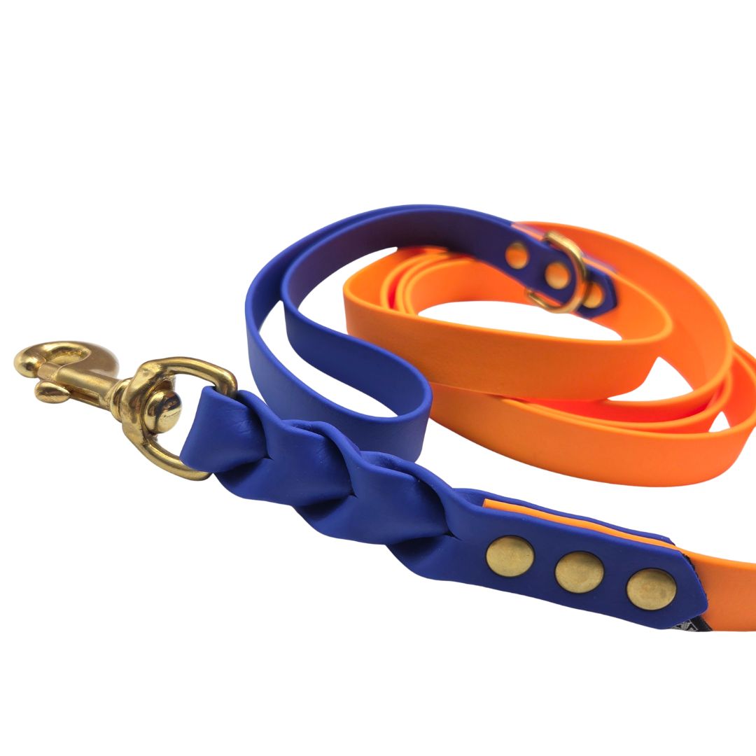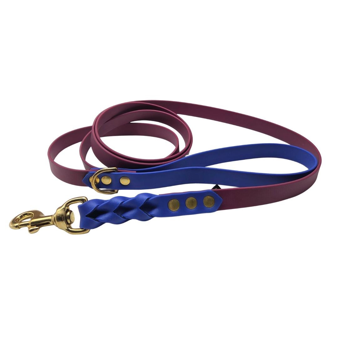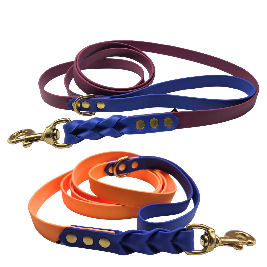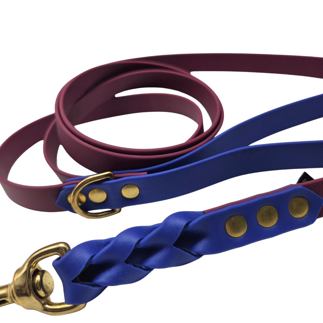 Hundkoppel tillverkad av BioThane®, tillverkad och patenterad i USA. Materialet har genomgått många kvalitetstester. BioThane® är mjukt och flexibelt, perfekt efterliknar naturläder. Biothane är ett polyesterband med TPU- eller PVC-beläggning som gör den mer hållbar, vattentät och lätt att rengöra. Materialet är flexibelt och mjukt.