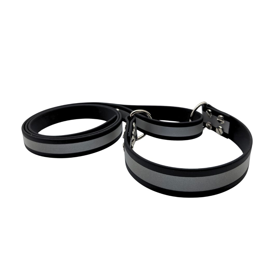 Ett Allt-i-Ett koppel-hundhalsband i Biothane Reflex.