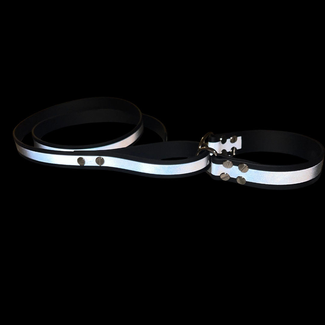 Vårt Allt-I-Ett Reflex finns i två koppellängder, fyra olika halsbandsstorlekar samt olika färger på d-ringarna. Skruvarna finns i två färger.